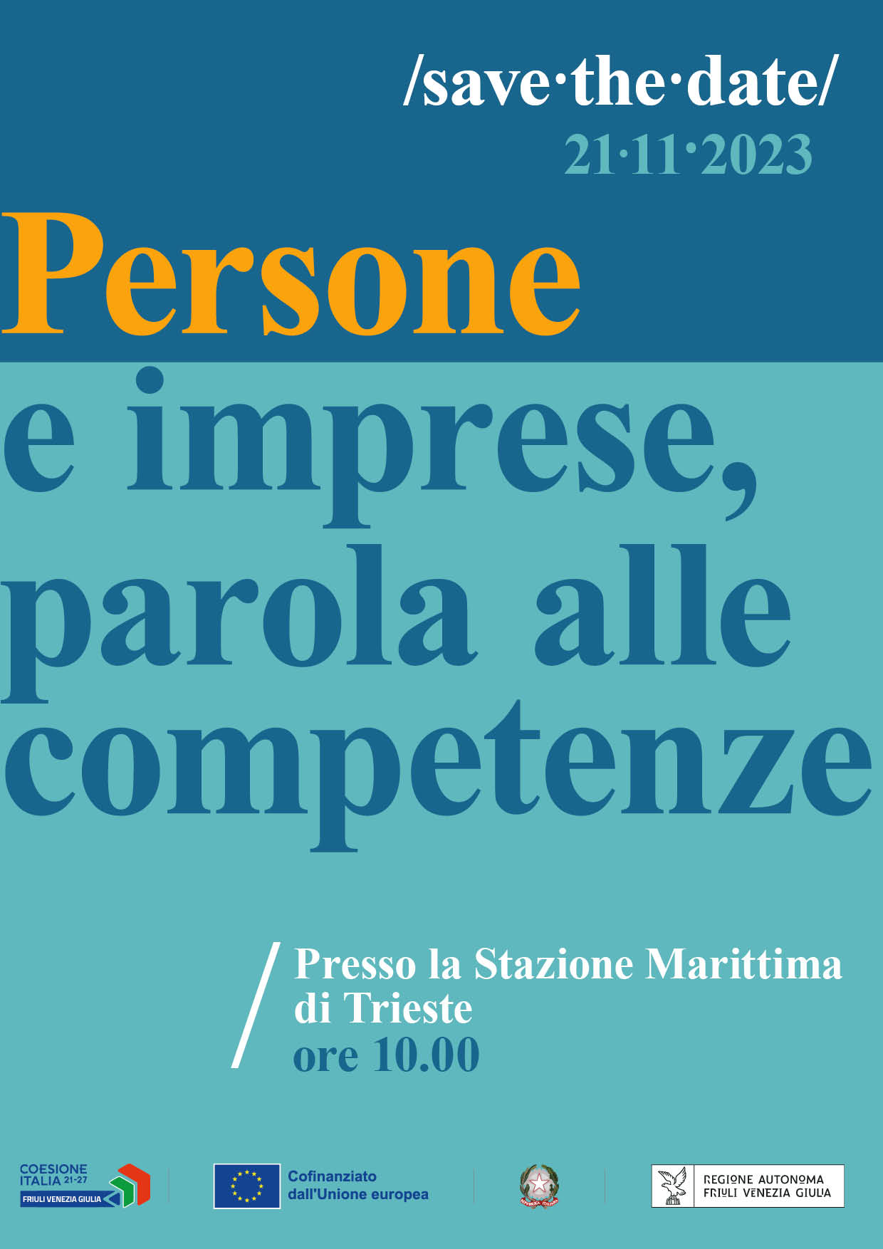 Nell’ambito del Fondo sociale europeo Plus e del Fondo europeo di Sviluppo Regionale del Friuli Venezia Giulia si segnala l’evento Persone e imprese, parola alle competenze del 21 novembre a Trieste presso la Stazione Marittima – ore 9:30 – 13:30 – che quest’anno sarà incentrato sulle competenze, tema centrale in Europa e per il futuro di imprese e lavoratori e uno dei cardini della programmazione 2021-2027.