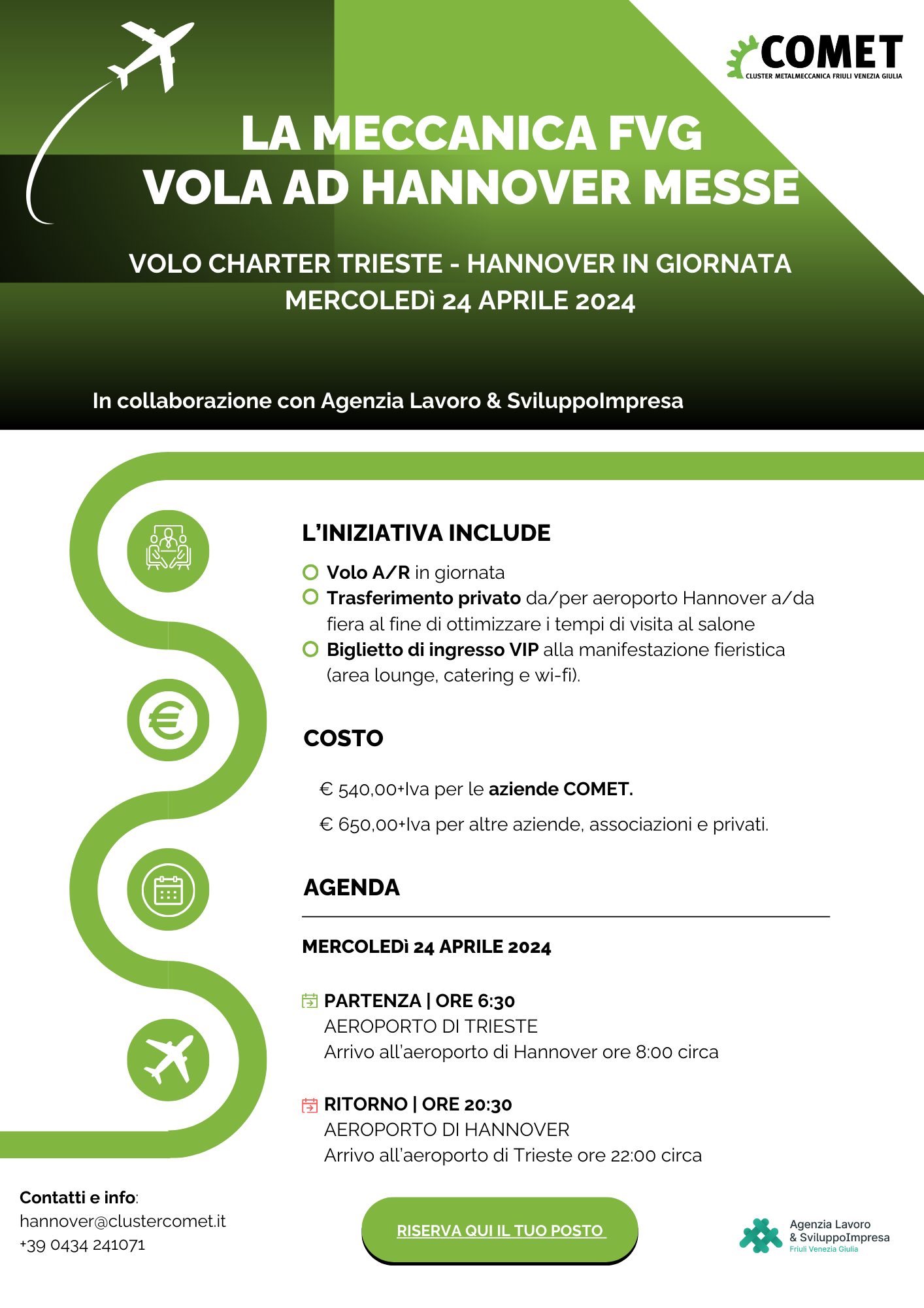 Per avere ulteriori informazioni, gli interessati possono rivolgersi direttamente a COMET tramite all’indirizzo email hannover@clustercomet.it.